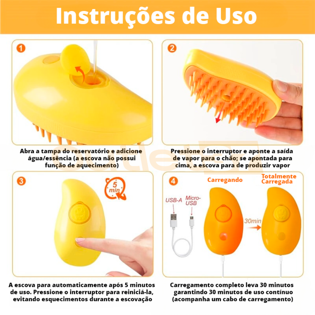 A função de vapor foi desenvolvida pensando no bem-estar do seu pet. Ela proporciona um toque suave e promove uma pele e pelos saudáveis. As cerdas são macias e seguras, enquanto a tecnologia a vapor adiciona uma camada extra de conforto.